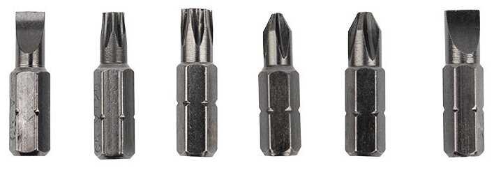 Биты подробно : | шлицевая - SL6 SL5, крестовая - PH1 PH2, шестигранная звезда - T3.0 T2.5, удлинитель |
