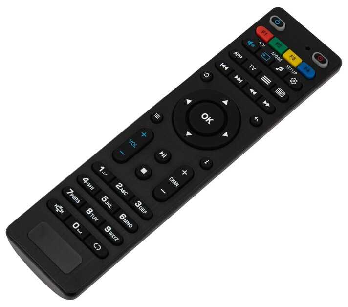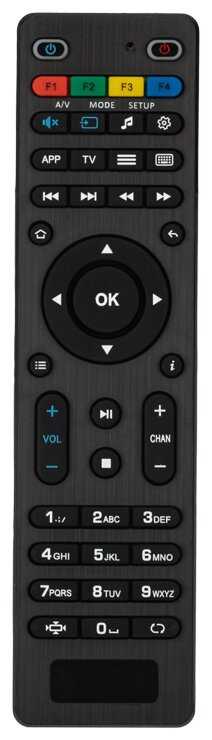 Работает с приставкой mag245 от Планеты. Кнопки программируются.