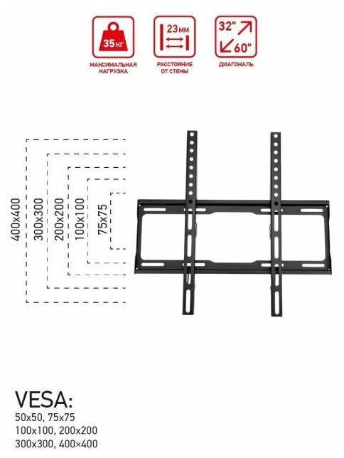 Отзывы о Кронштейн для телевизора настенный фиксированный 30-60 дюйма, ультратонкий, крепления в комплекте