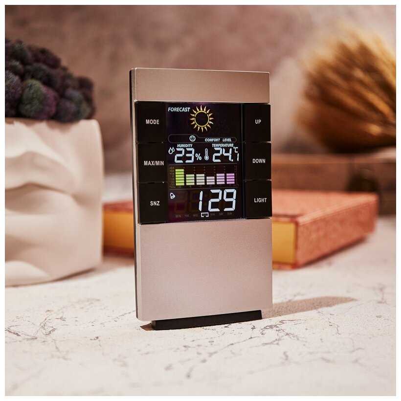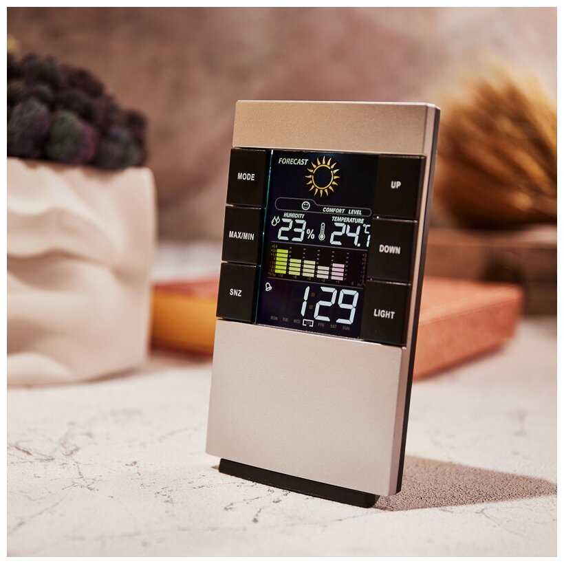 - + Метеостанция функции часы будильник температура в комнате и определяет влажность воздуха в доме .А также...