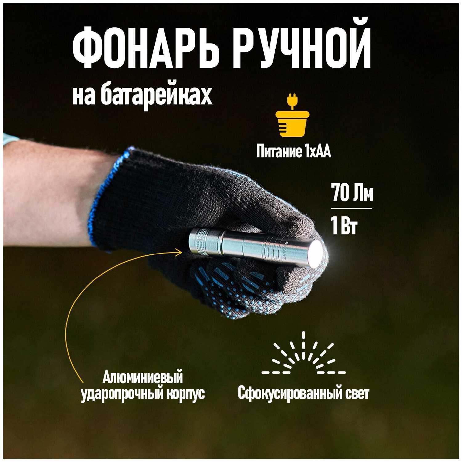 - + фонарик в металле и всего одна батарейка
