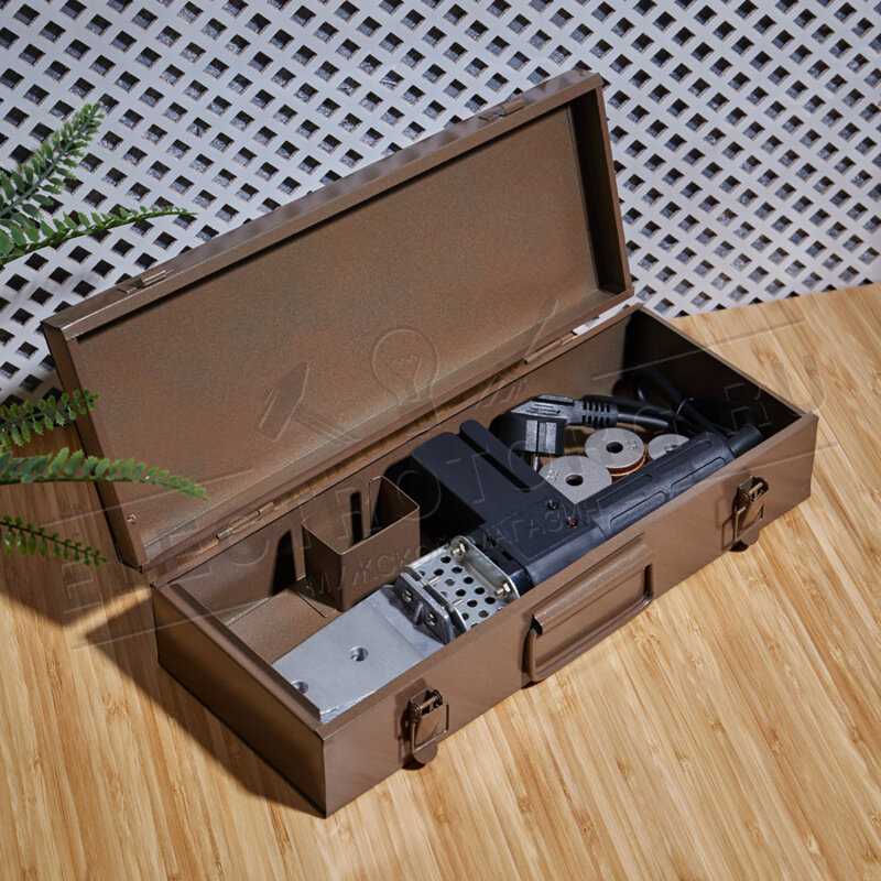 Максимально удобный и эффективный сварочный аппарат. Купил его для водопровода, потому что он именно для таких целей предназначен. Работает от сети, устойчив к перепадам напряжения. В комплекте кейс и 3 насадки.