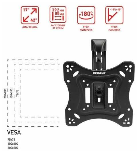 Характеристи REXANT для телевизора, диагональ 17"-42"