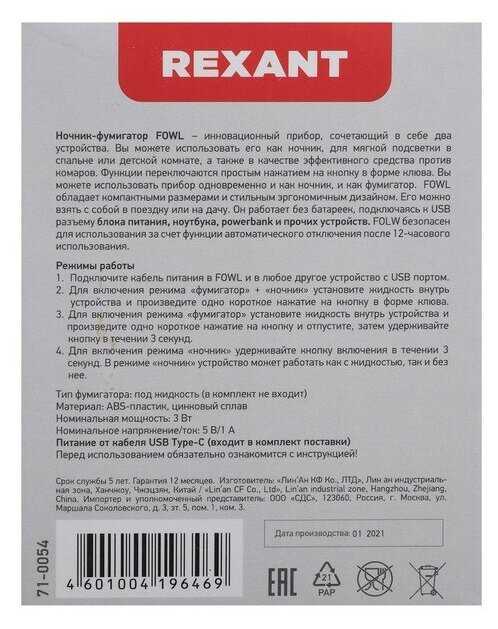 3 отзывов пользователей o REXANT Фумигатор USB (71-0054)