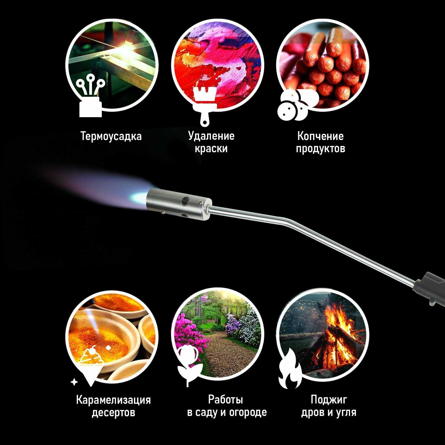 - + отличная горелка, пламя ровное, регулировки достаточные, пьезоподжиг норм работает, очень удобно разжигать что то глубоко в печи, не мажешься