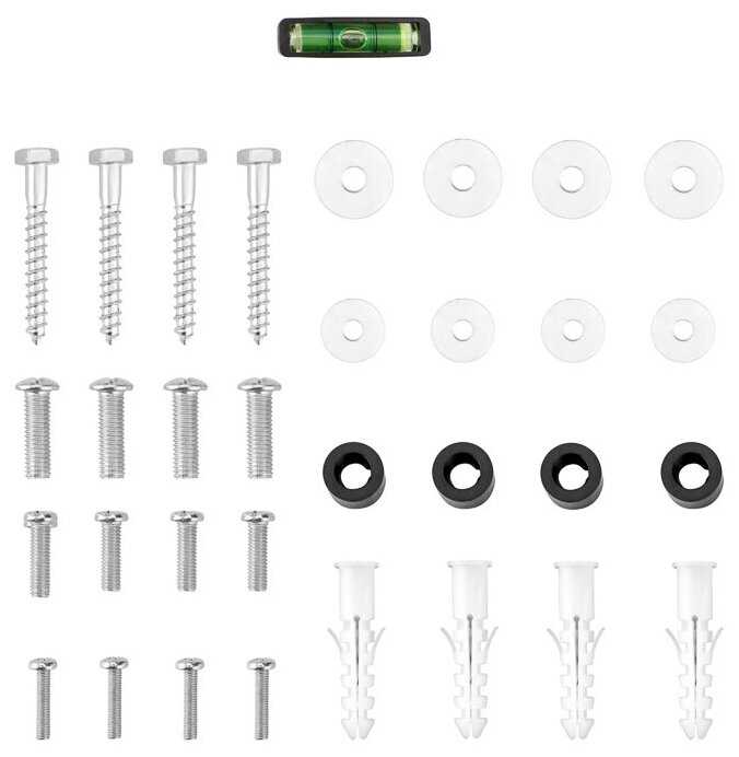 Отдельно благодарю производителя! В комплекте все что нужно для крепления (три вида болтов, пузырьковый уровень, дюбель-шурупы и т.д.). И цена отличная!