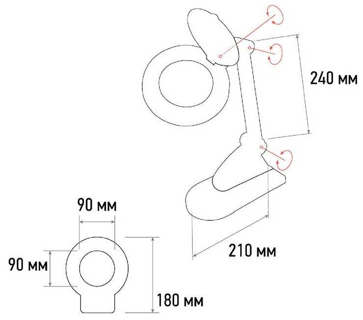 Конструкция : | лупа-лампа, настольная |