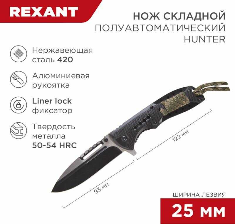 Дополнительная информация : | Нож складной полуавтоматический Rexant Hunter |