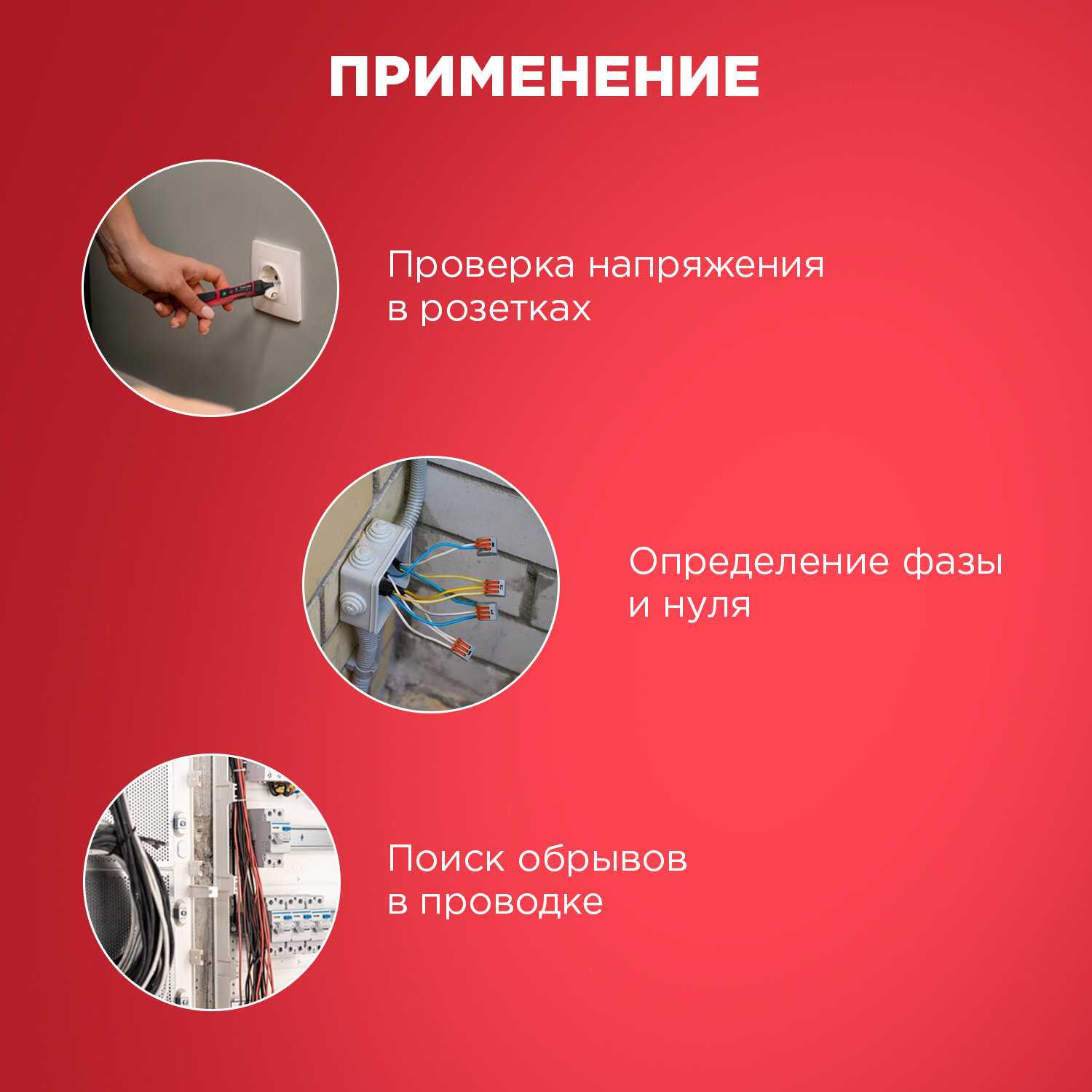 | Функции : | выявление повреждения проводки и соединения, измерение переменного напряжения, измерение постоянного напряжения, измерение проводимости |