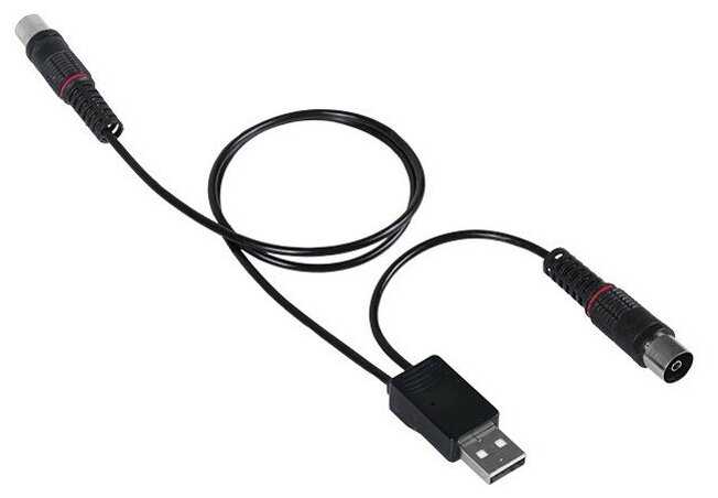 Удобный идектор доя антены, который можно запитать как разьма usb на телевизоре, так и от блока питания, кому как удобнее.