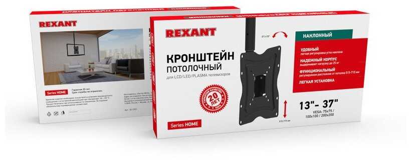 Отзывы о Кронштейн для телевизора потолочный наклонный 13-37 дюйма с регулировкой по высоте, крепления в комплекте