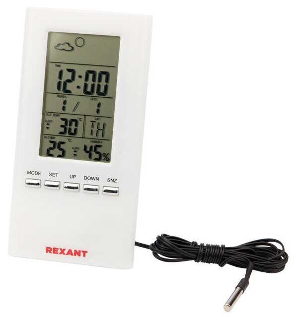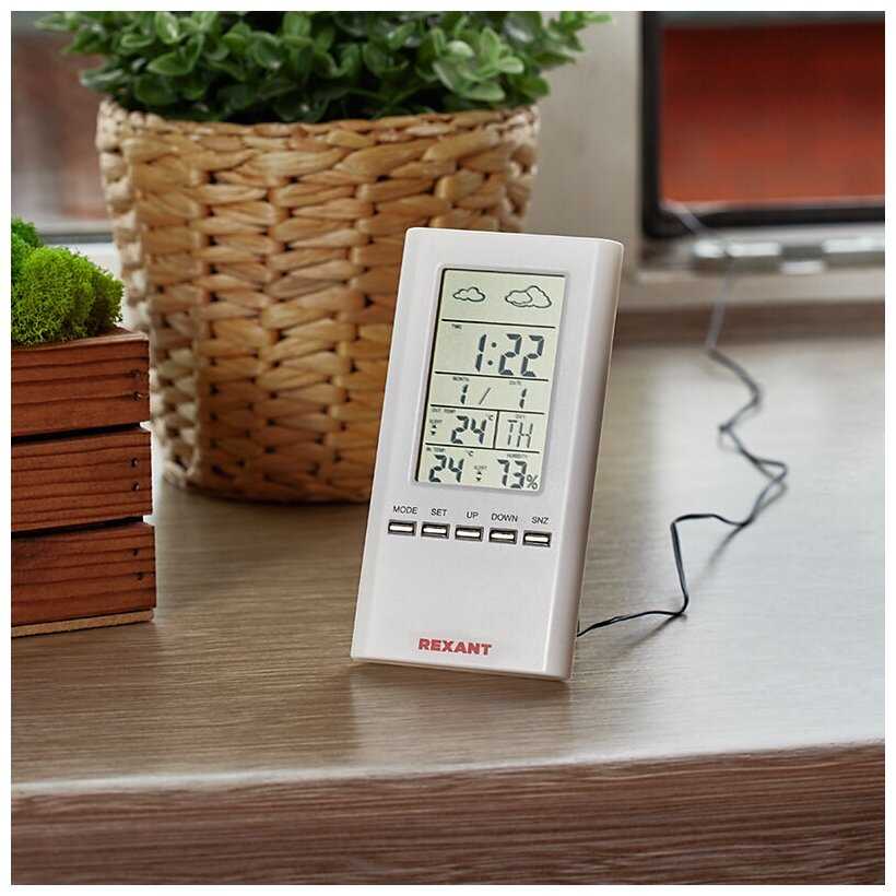 Отзывы о Метеостанция домашняя комнатно-уличная REXANT термометр датчик влажности будильник