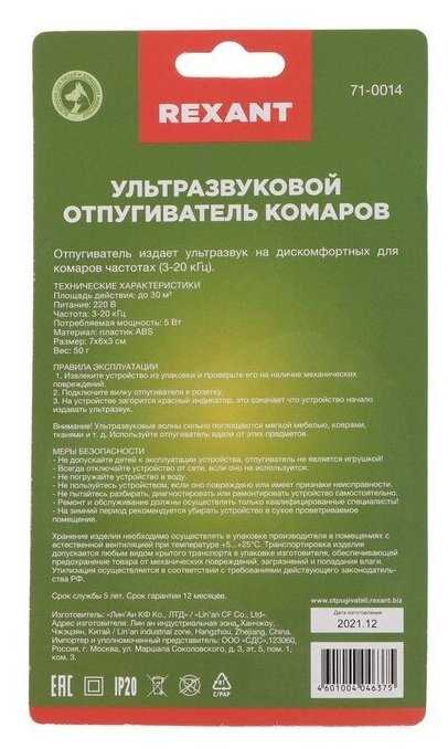 Отзывы о Ультразвуковой отпугиватель REXANT Ультразвуковой отпугиватель (71-0014)