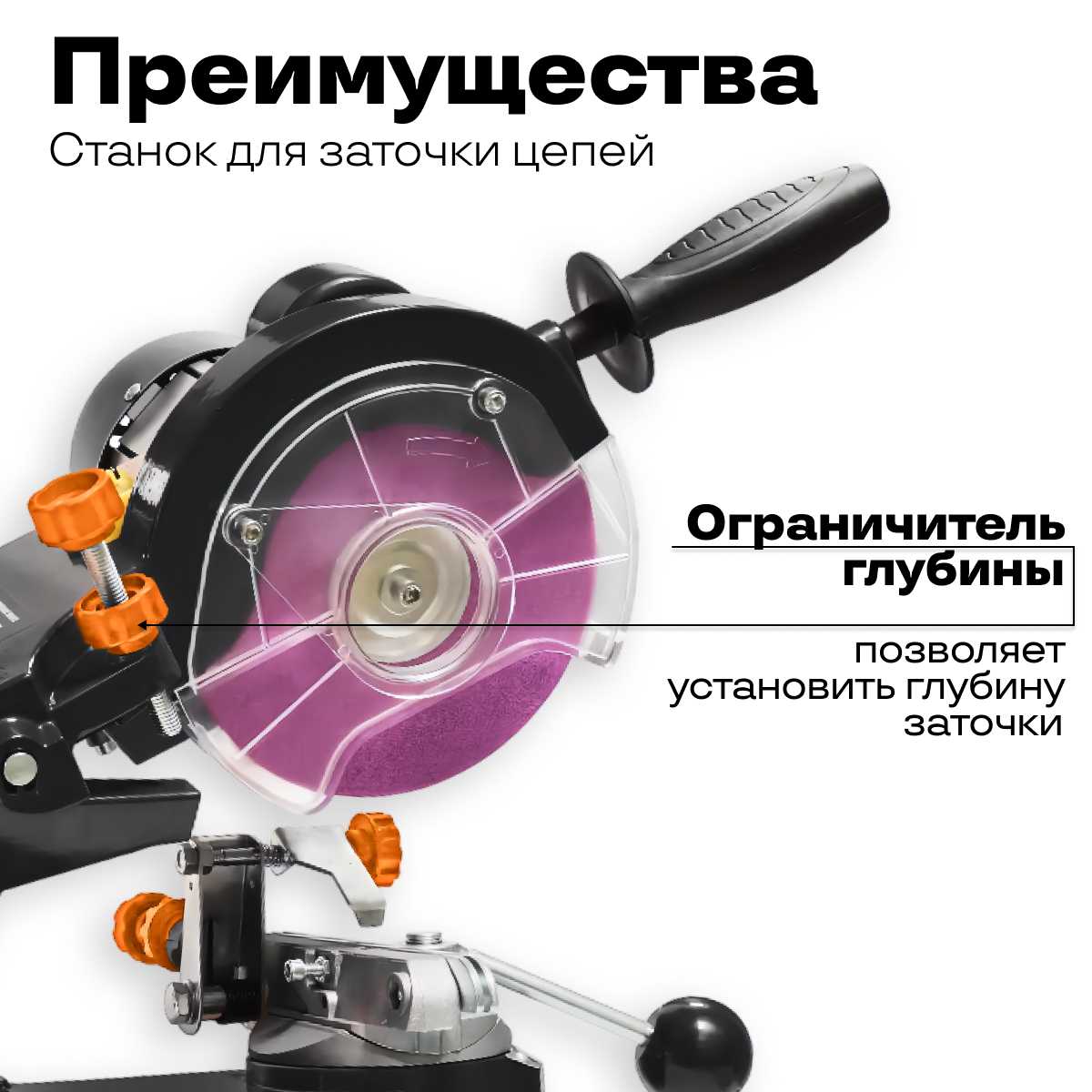 - + Регулируемые углы наклона диска, а не только цепи, как на более дешевых. Можно точить цепи с разными углами заточки.