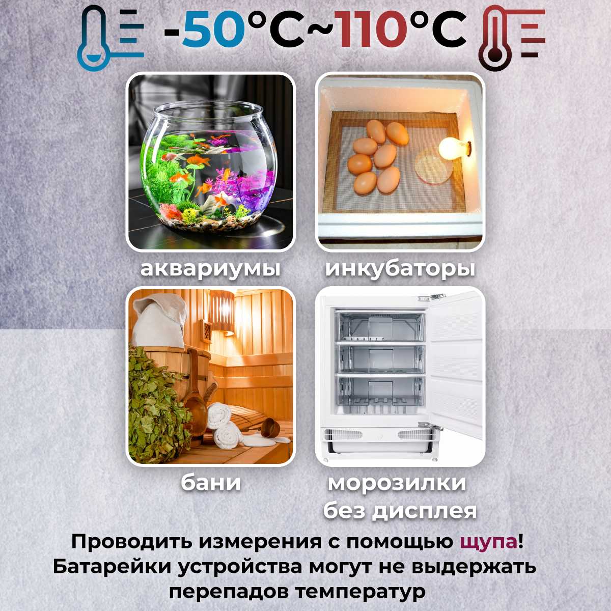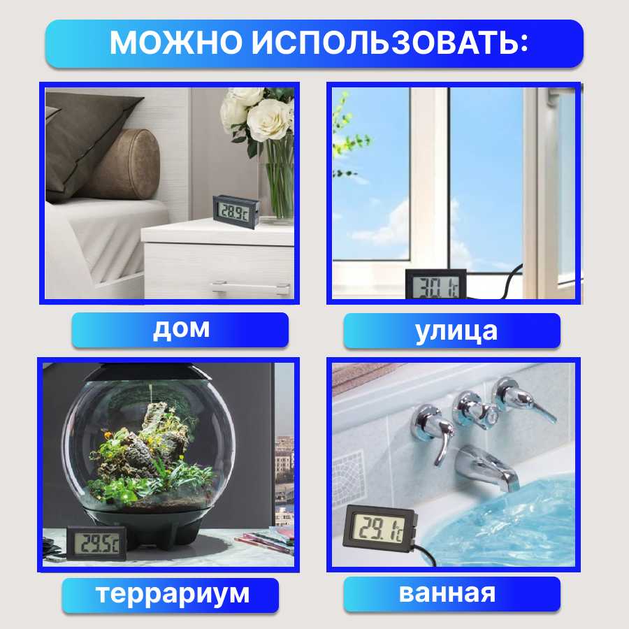 Идеален для контроля температуры в аквариумах, банях, комнатах или на даче при условии защиты от прямых осадков. Чаще всего используется для мониторинга уличных показаний через оконный монтаж датчика. Не рекомендован для медицинских замеров или точных лабораторных работ из-за возможной погрешности. -
