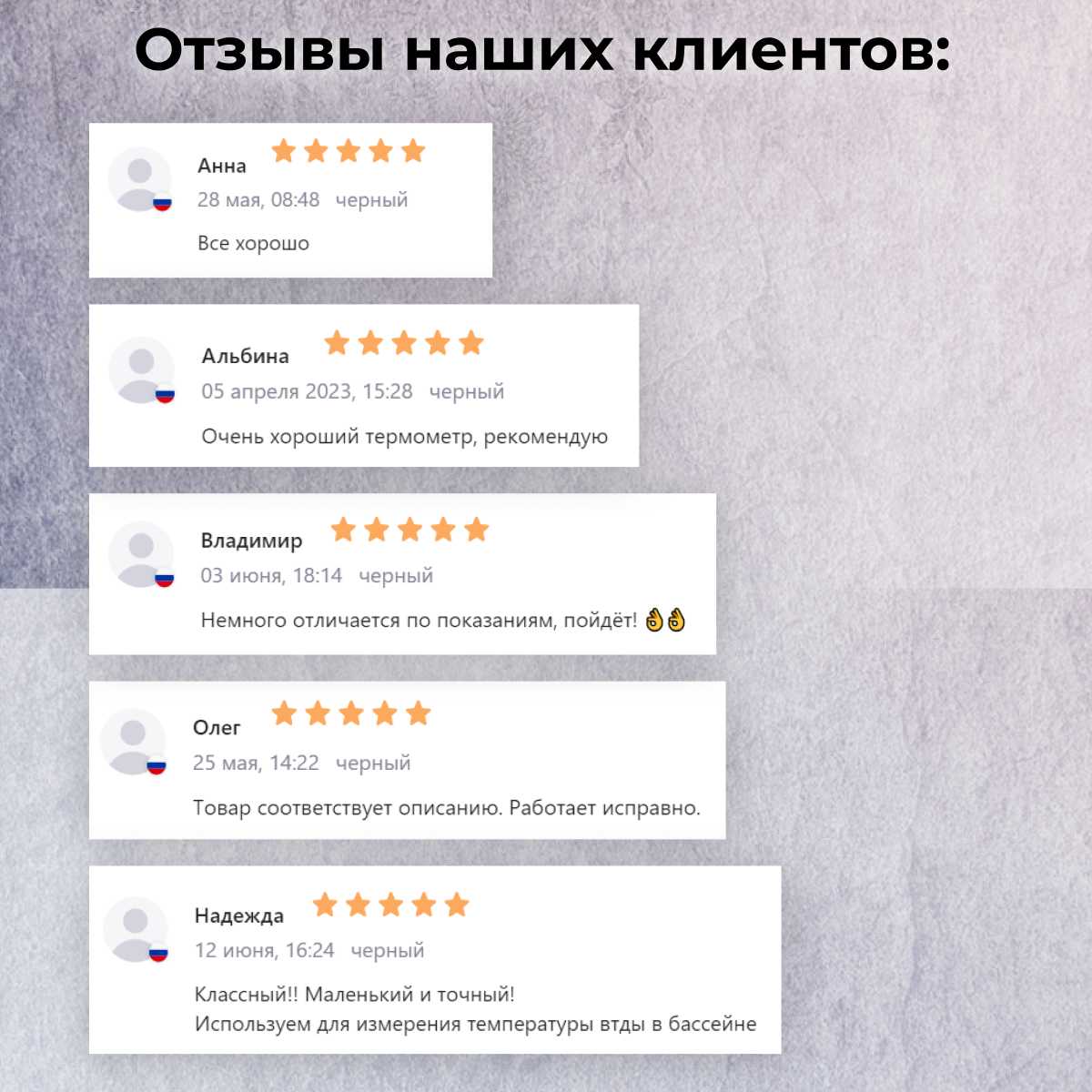 При покупке нескольких термометров возможны расхождения до 0,7°C. Пользователи объясняют это не массовым производственным браком, а допустимыми отклонениями дешёвых сенсоров. Для бытовых нужд разница некритична, но для синхронного контроля в одной точке лучше выбрать более дорогие аналоги. -