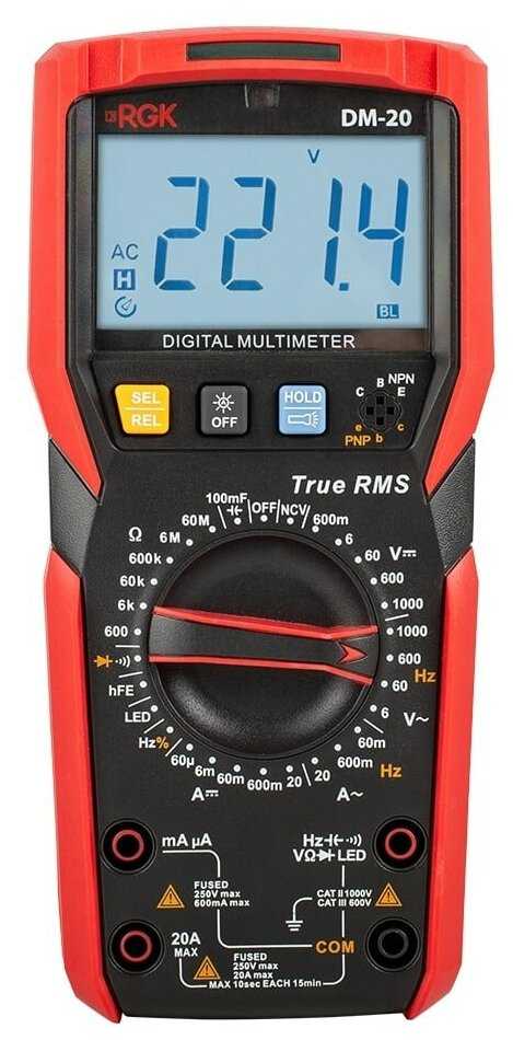 | Функции : | выявление повреждения проводки и соединения, измерение емкости конденсаторов, измерение переменного напряжения, измерение постоянного напряжения, измерение работоспособности диодов и транзисторов, измерение силы переменного тока, измерение силы постоянного тока, измерение сопротивления, измерение температуры, измерение частоты, определение местоположения проводов |
