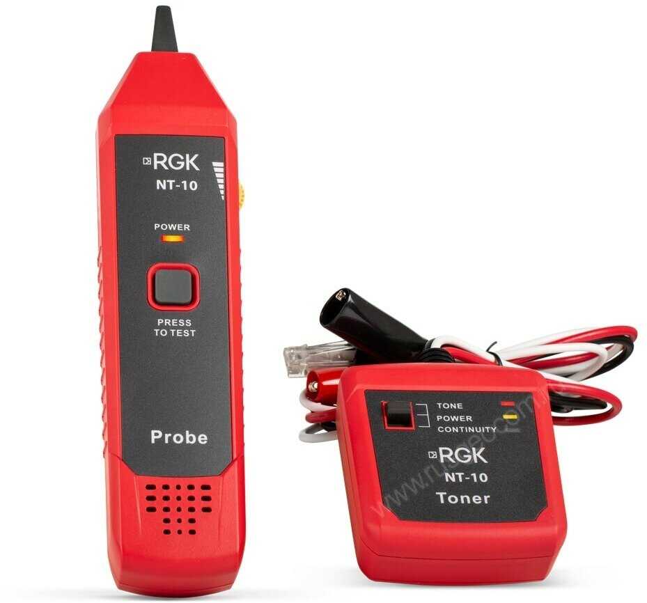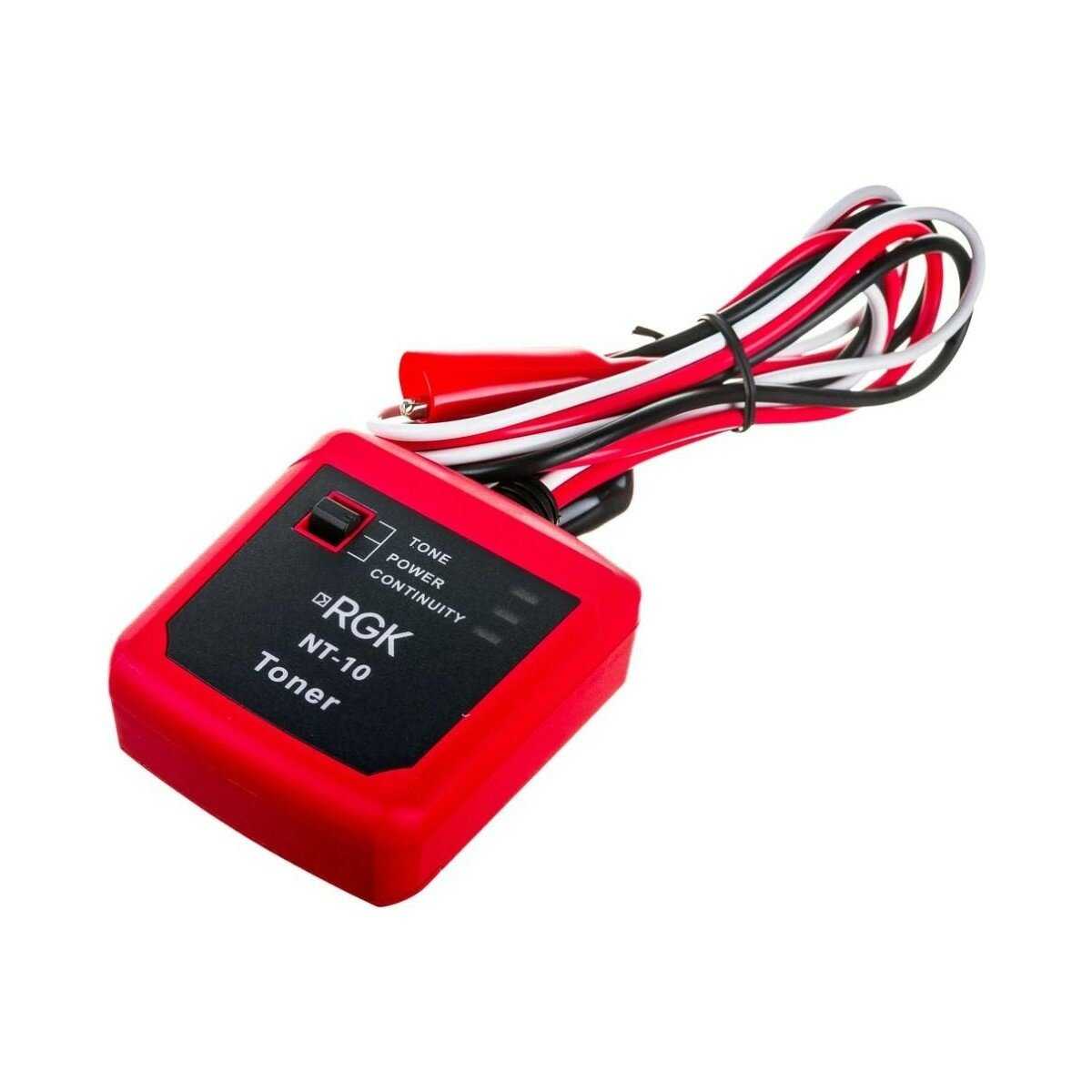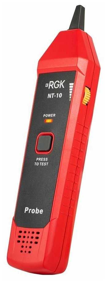 RGK NT-10 — это компактный и многофункциональный кабельный тестер, предназначенный для проверки различных типов кабелей, включая витую пару, коаксиальные и телефонные линии. Он поддерживает как статическое, так и динамическое тестирование, что позволяет выявить возможные неисправности. Устройство оснащено дисплеем с подсветкой для удобного отображения результатов даже при низкой освещенности.