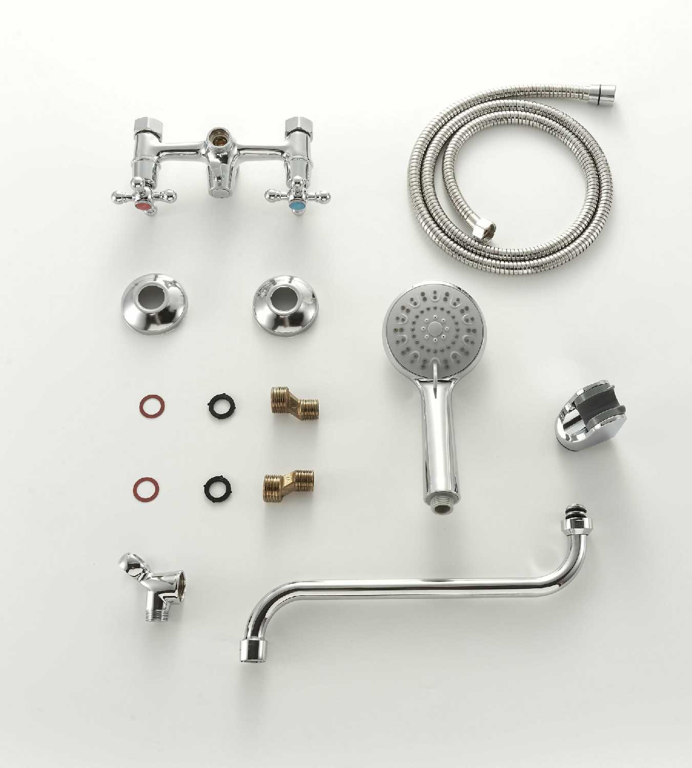 | Комплектация : | гусак, держатель лейки, дивертор, излив для набора воды, лейка, набор эксцентриков, настенный держатель, отражатель, переключатель потоков, ручной душ, смеситель, шланг |