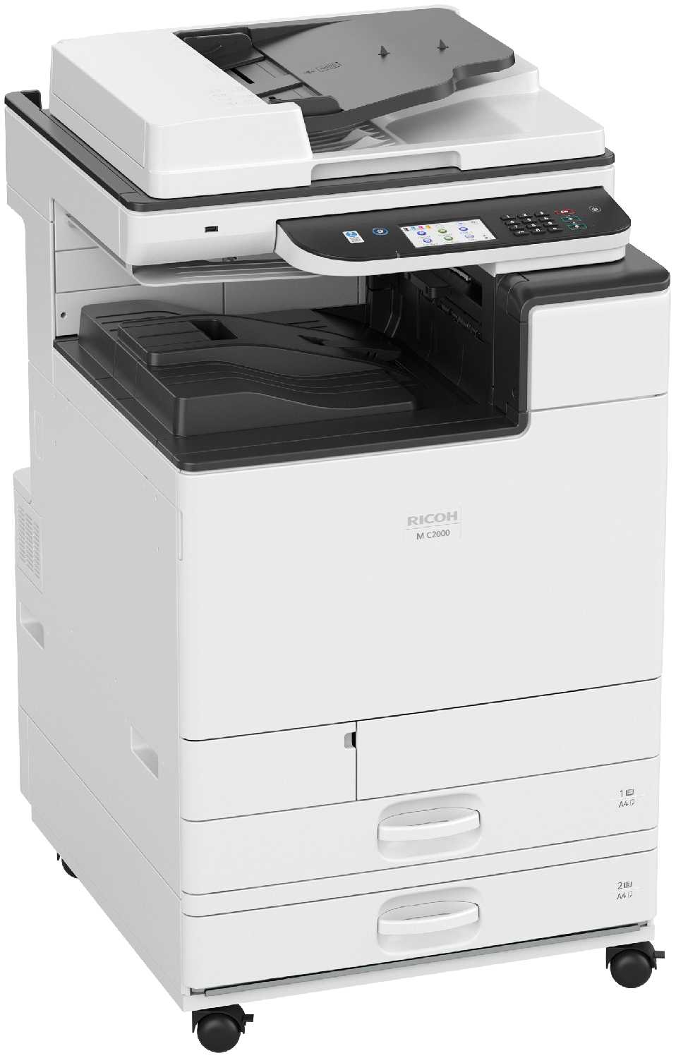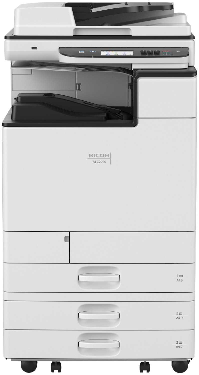 Выбирая подходящее многофункциональное устройство, я остановил свой выбор на модели Ricoh M C2000. Никогда раньше не брал Ricoh, но знаю, что это японская компания и на них печатают в типографиях. Нужна была именно цветная печать. Устройство достаточно эргономичное, но надо было для размещения на пол взять дополнительную тумбу. Сначала не хотел переплачивать, но на столе А3 устройство занимает очень много места. Это лазерное цветное МФУ 3 в 1, поэтому заменяет принтер, сканер и ксерокс. Нам надо было МФУ формата А3, для нашей рекламной компании это важно, поскольку мы часто печатаем мини буклеты и брошюры.