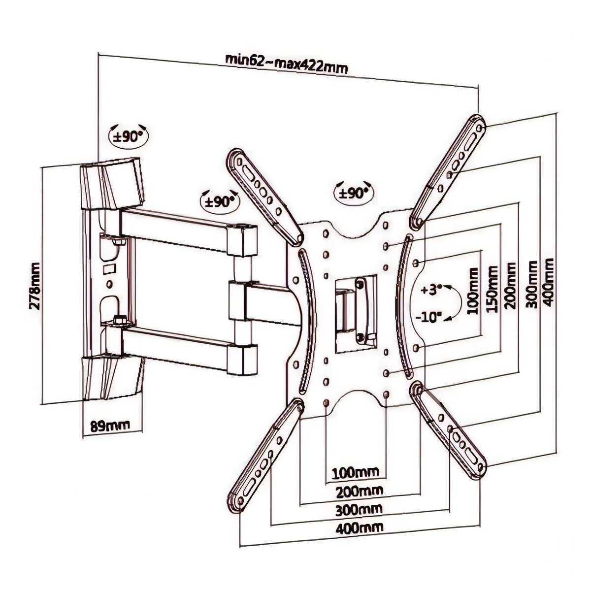 | Расстояние от стены/потолка : | 62-422 мм |