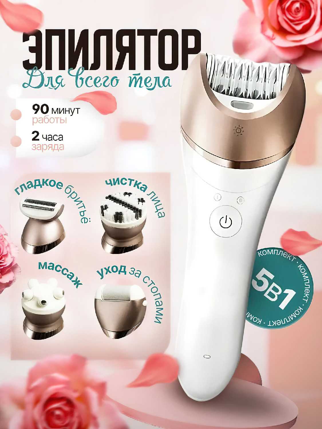 | Подробная комплектация : | эпилятор, 5 насадки, щеточка, кабель для зарядки |