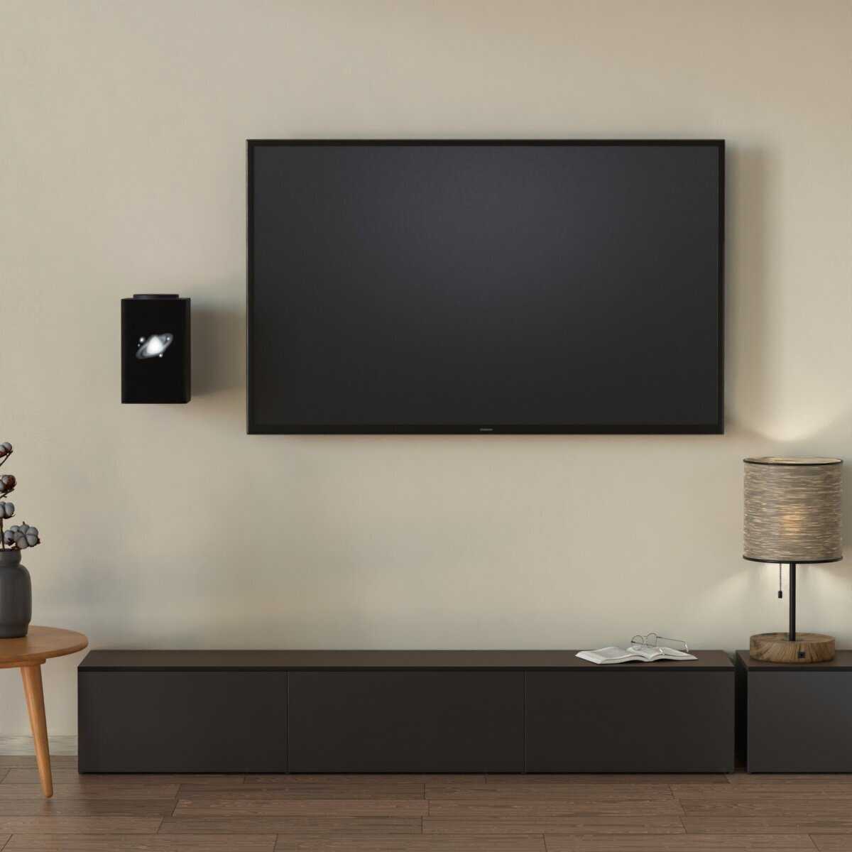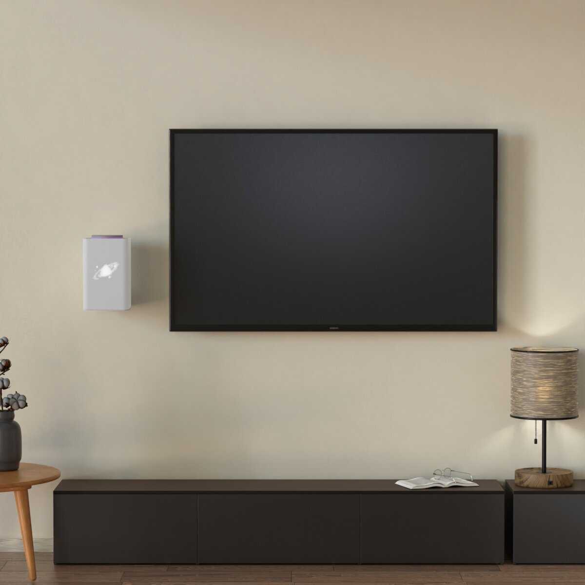 Напротив, приподнятое положение улучшает акустику за счёт отсутствия препятствий спереди, а отверстие снизу сохраняет басы. Пользователи отмечают, что звук становится чище по сравнению с размещением на тумбе. Особенно это заметно при подключении к ТВ через HDMI.