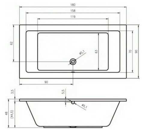 - + Широкое плоское дно, вертикальные боковые стенки: больше пространства для принятия душа. Широкие плоские боковины по 10 см - можно поставить кучу флакончиков.
