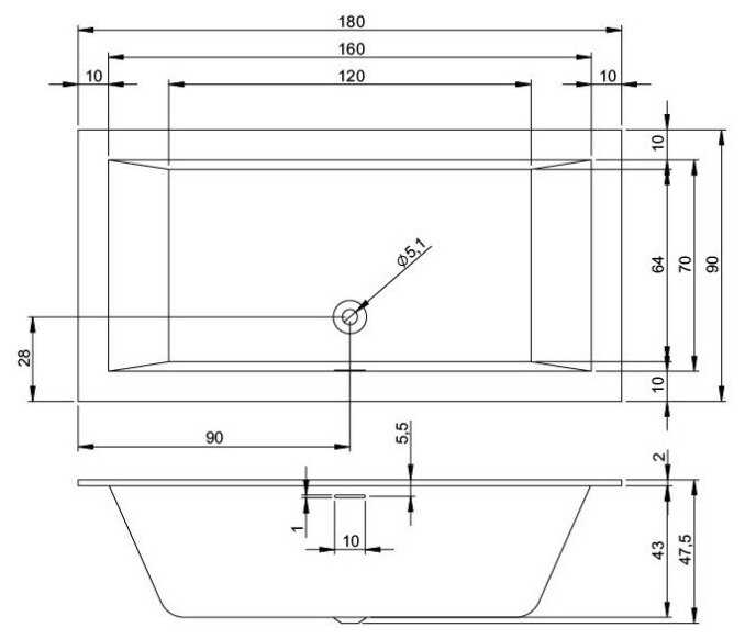 Характеристи Riho RETHING CUBIC 180x90 (B107001005/BR0900500000000), без каркаса и сифона