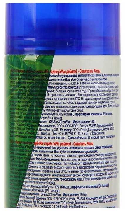 28 отзывов пользователей o Rio Royal аэрозоль Свежесть росы, 300мл