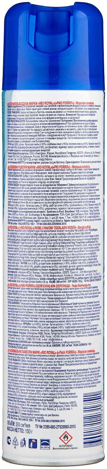 41 отзывов пользователей o Rio Royal Освежитель воздуха Морская Свежесть, 300 мл