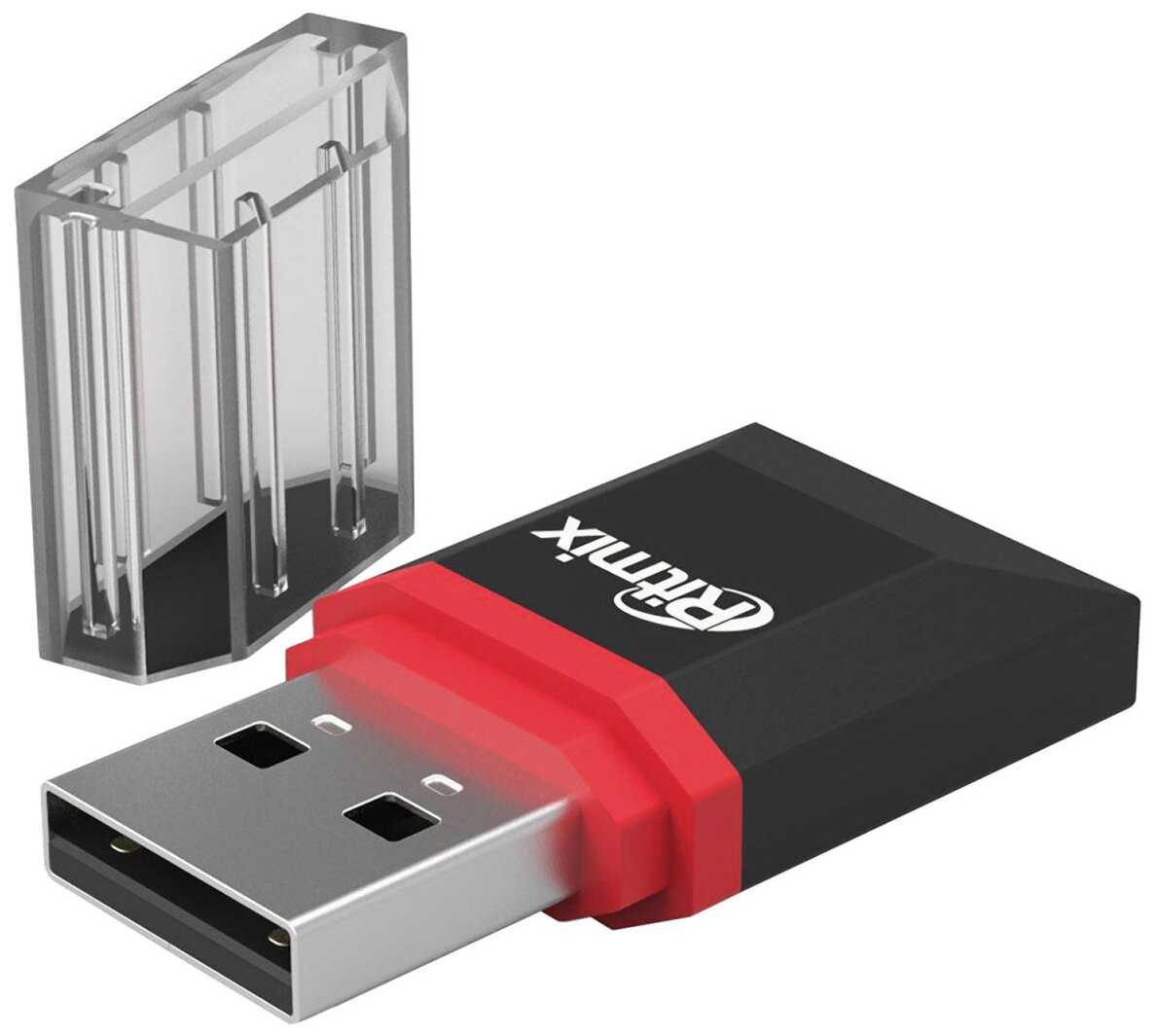 - + Картридер Ritmix маленький, Микро-SD держится нормально, есть колпачок для USB-2.0 разъёма. Недорогой.