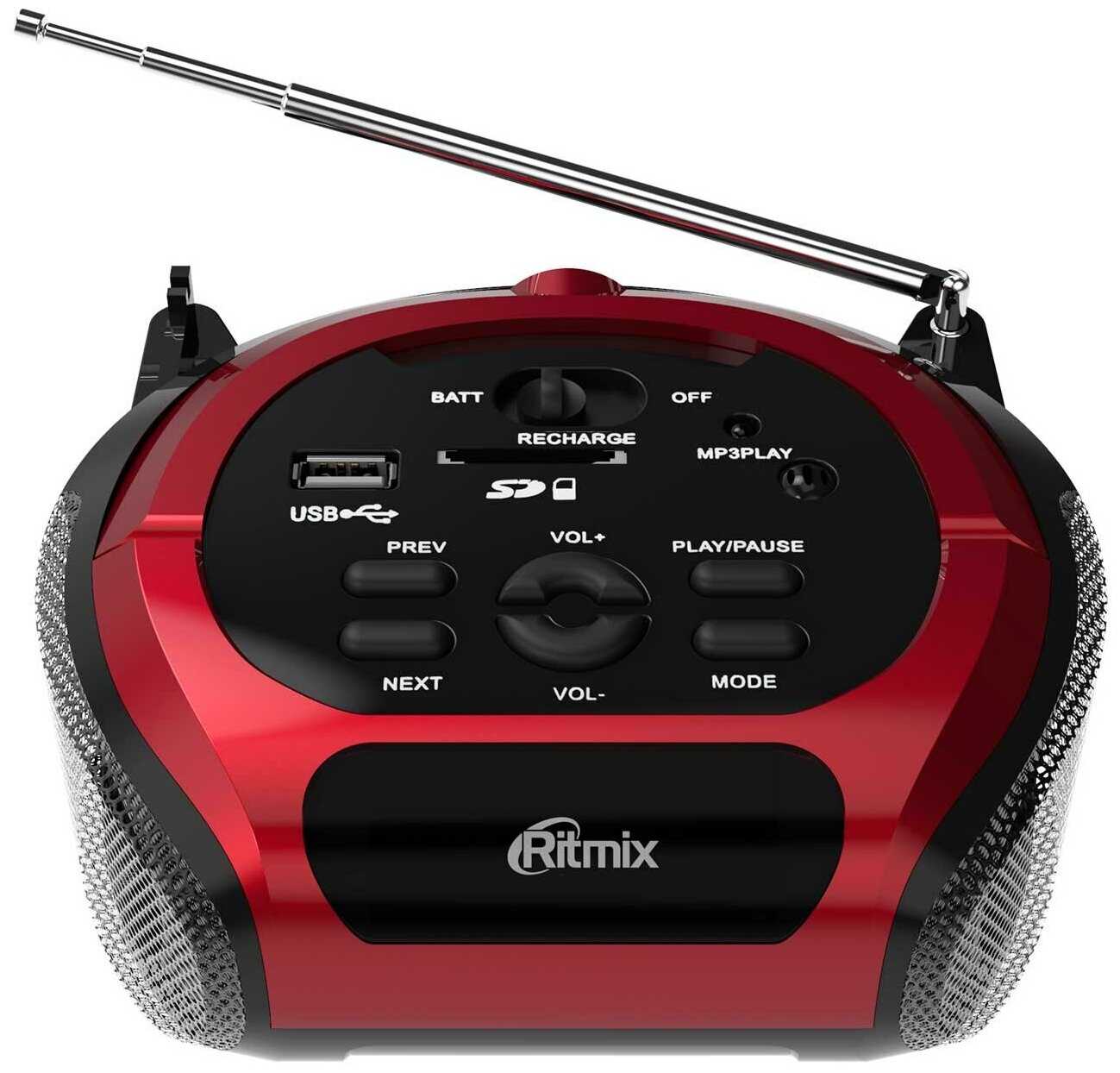 - + Хорошая магнитола. Покорил стильный современный дизайн, красный, яркий цвет "Металлик", компактный размер и все нужные среднему потребителю функции. Некоторые не довольны звуком, громкостью, но вы должны для себя уяснить перед покупкой, что это не музыкальный центр за 30 000 руб, а обычное радио с модными фишками и не дорогой ценой. Для этой ниши она хороша, по сравнению с другими производителями. Да есть недостатки (ниже) но они существенно ниже ее преимуществ. Некоторые вообще включить то не могут, а уже пишут претензии. Сначала надо хотя бы инструкцию прочитать, а если и это не помогает, обратиться к любому школьнику, он вам настроит. У меня при включении ранее настроенные где то станции шипели и плохой звук был. Я перенастроил станции в авт.режиме, он настроился на местные наши станции и пошел чистый звук (нажать и держать кнопку "play/pause"), Чтобы включить режим радио, надо нажать кнопку "Mode", и когда тетка по английски скажет, что включен режим ФМ радио, зазвучит музыка на первой станции. Нажимать нужно каждый раз когда нужно найти необходимый тебе режим.