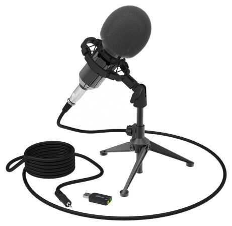 В целом хороший микрофон, в комплекте несколько видов крепления, звуковая карты usb, отличный, длинный, толстый кабель. Из минусов - низкое усиление, хотелось бы погромче.