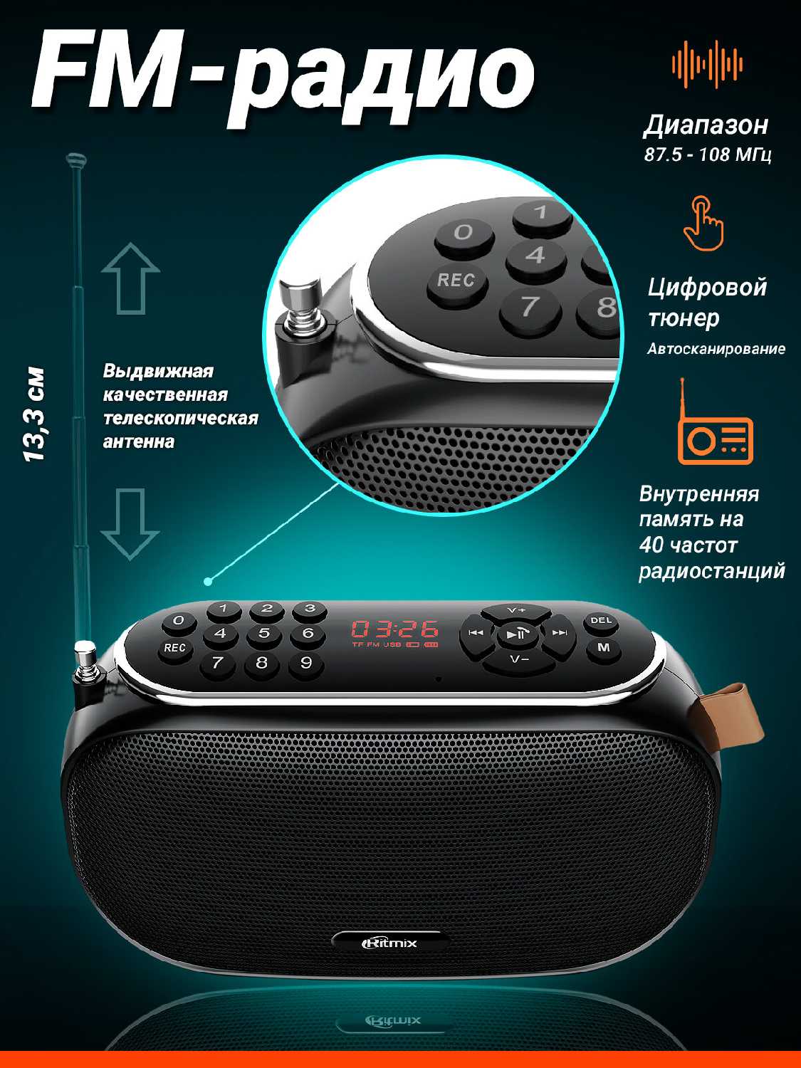 ΠΠ²ΡΠΊ MP3 ΠΌΠΎΠΆΠ½ΠΎ ΡΠΊΠ°Π·Π°ΡΡ Ρ ΠΎΡΠΎΡΠΈΠΉ, ΡΡΡΡ-ΡΡΡΡ Ρ ΡΠΆΠ΅ ΡΠ΅ΠΌ Ρ "Perfeo Sound Ranger" (ΠΈΠΌΠ΅Ρ ΡΠ°ΠΊΠΎΠΉ) ΡΠ°Π·Π½ΠΈΡΠ° ΠΏΡΠ°ΠΊΡΠΈΡΠ΅ΡΠΊΠΈ Π½Π΅ Π·Π°ΠΌΠ΅ΡΠ½Π°, Π½ΠΎ ΠΌΠΎΡΠ½ΠΎΡΡΡ Ρ "Perfeo" Π²ΡΡΠ΅. ΠΡΠΈ Π³ΡΠΎΠΌΠΊΠΎΡΡΠΈ "Π΄ΠΎ ΠΊΠΎΠ½ΡΠ°" Ρ "Ritmix RPR-010" ΠΈΡΠΊΠ°ΠΆΠ΅Π½ΠΈΠΉ Π½Π΅Ρ. Π ΡΠ°ΠΊΠΆΠ΅ ΠΏΠ»ΡΡ, ΡΡΠΎ Π² Π½ΡΠΌ ΠΌΠΎΠΆΠ½ΠΎ ΠΏΠ΅ΡΠ΅ΠΊΠ»ΡΡΠ°ΡΡΡΡ ΠΌΠ΅ΠΆΠ΄Ρ ΠΏΠ°ΠΏΠΊΠ°ΠΌΠΈ. ΠΡΡ ΠΎΠ΄ΠΈΠ½ ΠΏΠ»ΡΡ, ΡΡΠΎ Π½Π° ΠΏΠ΅ΡΠ²ΡΠ΅ ΠΏΡΡΡ ΠΊΠ½ΠΎΠΏΠΊ ΠΌΠΎΠΆΠ½ΠΎ ΡΡΡΠ°Π½ΠΎΠ²ΠΈΡΡ Π»ΡΠ±ΡΠ΅ FM ΡΡΠ°Π½ΡΠΈΠΈ. ΠΠ½Π΄ΠΈΠΊΠ°ΡΠΎΡ Π·Π°ΡΡΠ΄Π° Π°ΠΊΠΊΡΠΌΡΠ»ΡΡΠΎΡΠ° ΠΈΠΌΠ΅Π΅Ρ ΡΡΠΈ Π΄Π΅Π»Π΅Π½ΠΈΡ (Π½Π° ΠΏΠΎΡΠ»Π΅Π΄Π½Π΅ΠΌ ΡΠ°Π±ΠΎΡΠ°Π΅Ρ Π³Π΄Π΅-ΡΠΎ 10-15 ΠΌΠΈΠ½ΡΡ).