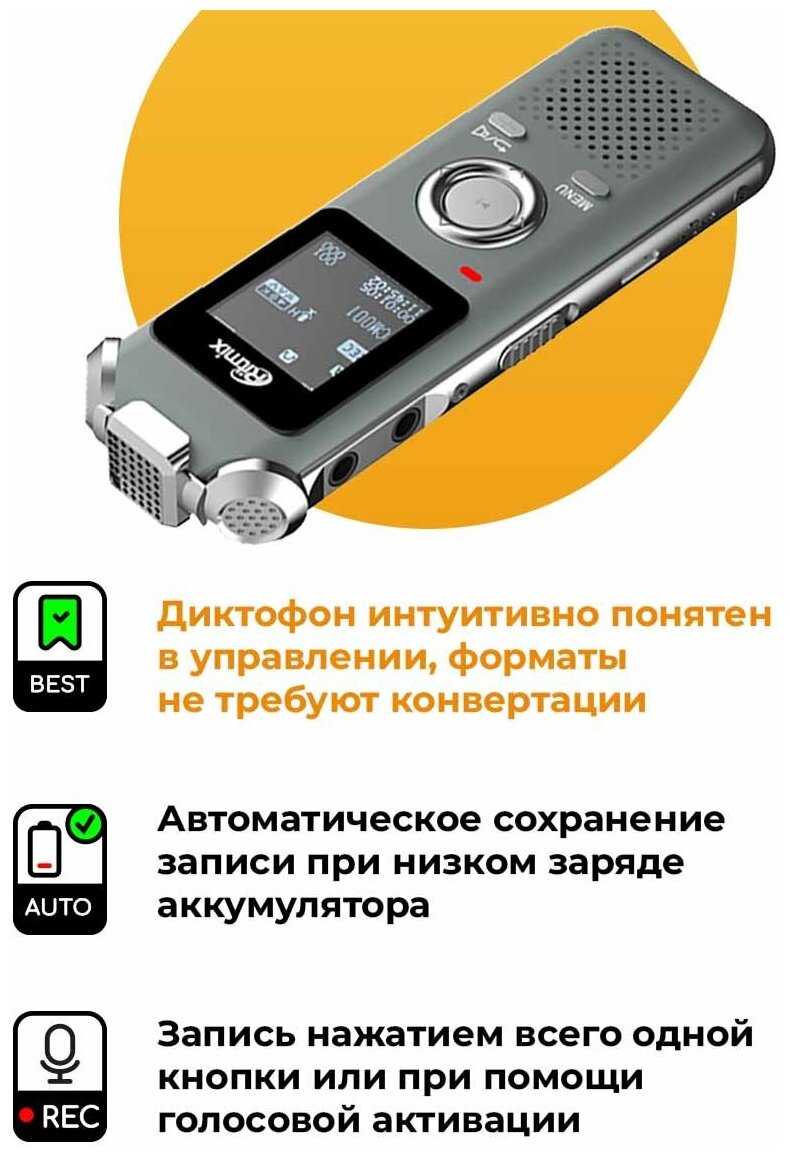 - FM-радио с 20 станциями фиксирует сигналы для записи эфиров, расширяя применение за пределы диктофона и повышая ценность в поездках.