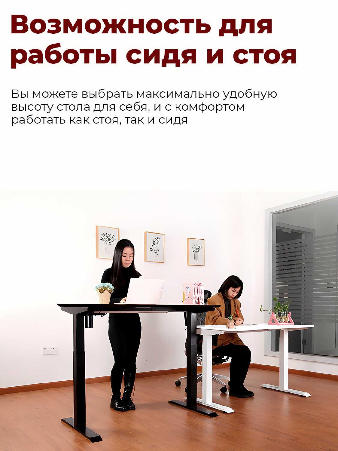 Стандартные размеры столешницы — 120 см в ширину и 60 см в глубину — подходят для размещения двух мониторов, клавиатуры и мыши, но могут быть тесноваты при добавлении системного блока или канцелярских принадлежностей. Пользователи ростом 175-180 см отмечают достаточность высотного диапазона как для сидячей, так и для стоячей работы. Для большей свободы рекомендуется модель 140 см в ширину, а тем, кому важна глубина, стоит рассмотреть возможность установки нестандартной столешницы. -