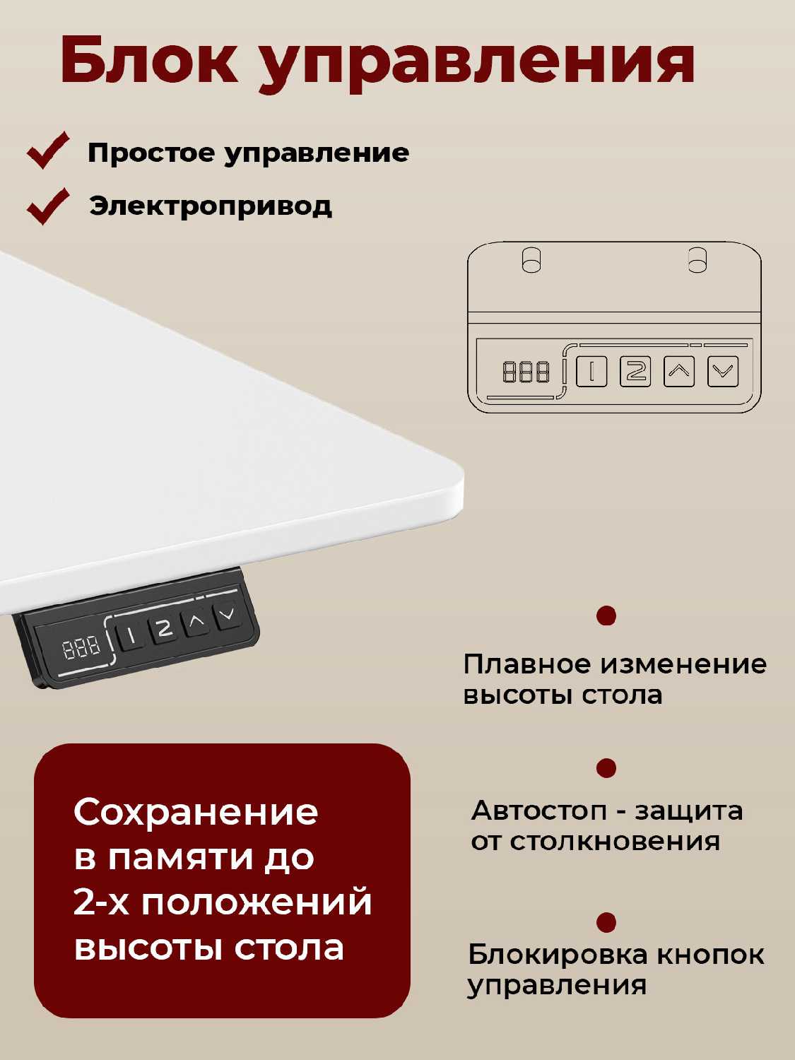 - Регулировка высоты с памятью позиций: