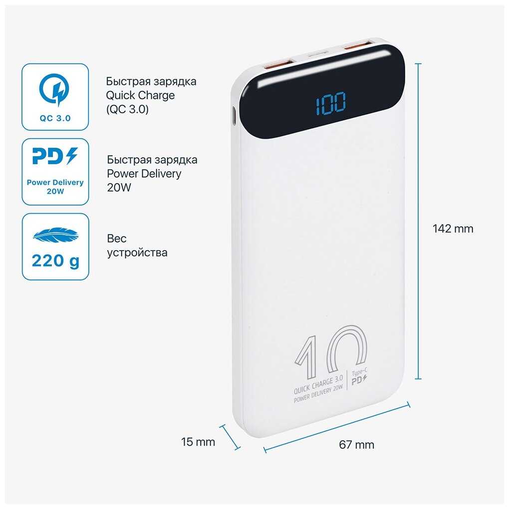 - емкость: 10000 мА·ч (37 Вт·ч)