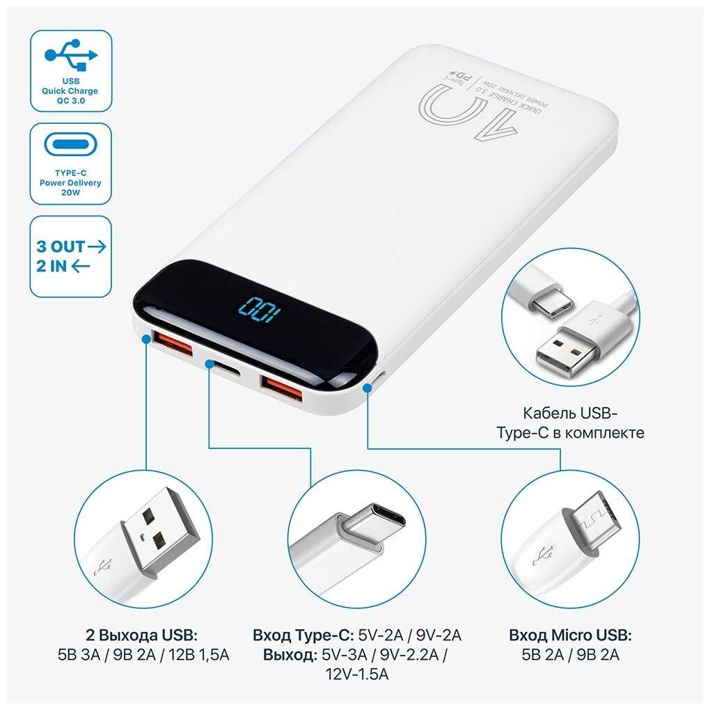 Хороший аккумулятор, купил в поездку, хватает на 2 зарядки телефона с АКБ 5000мАч спокойно, поддерживает быструю зарядку от Type-C и от USB Type-A