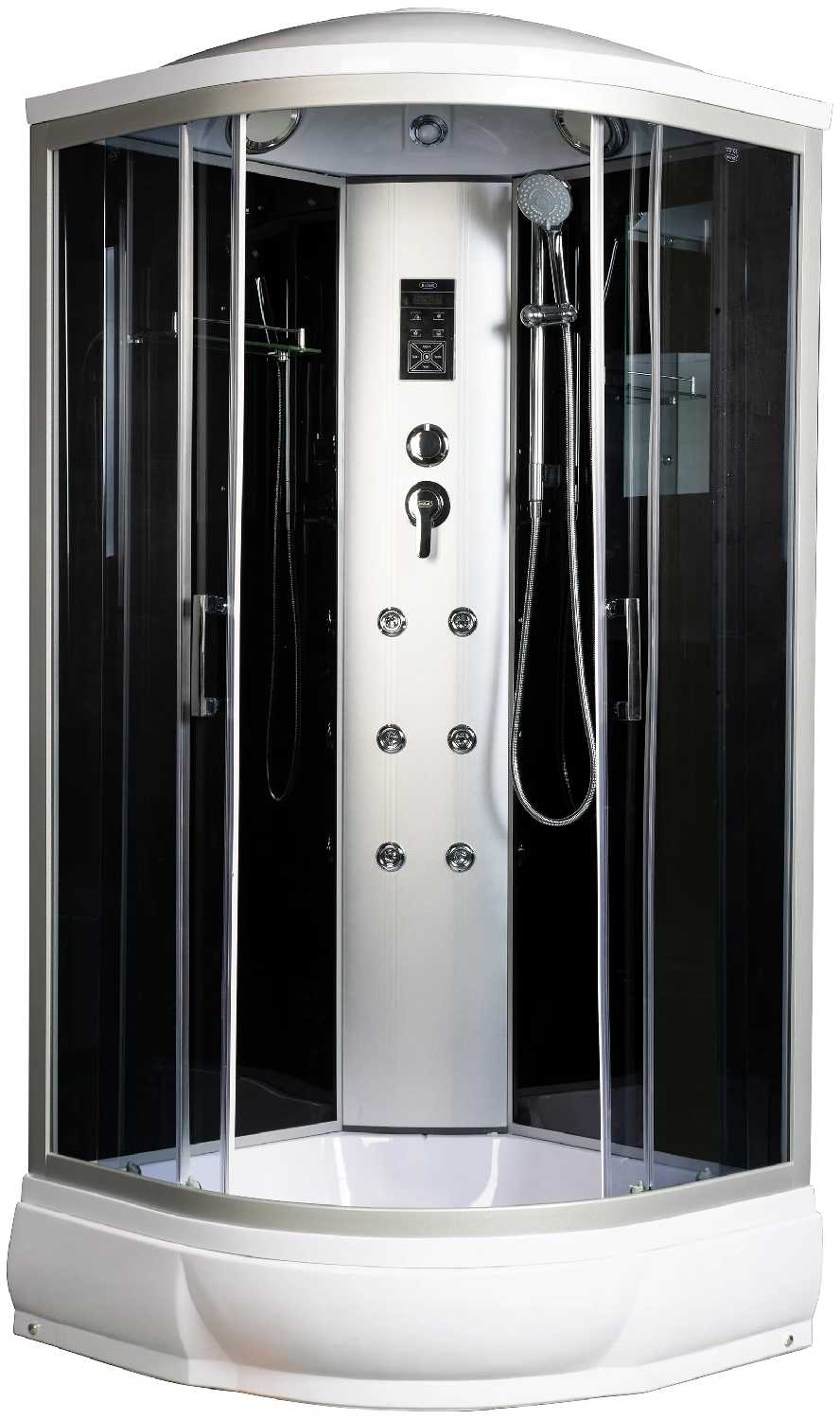 - - царапины на обоих задних стёклах,при этом стекло просто толи плёнка толи покрашена ,при транспортировке большие потёртости алюминиевого профиля на самом видном месте.при сборке ещё "подарочек" отверстия в профиле под крепления сильно смещены относительно мест крепления.за центральной панелью и крышкой зазор 1,5-2см.Размер кабины 88*88см а не 90*90 .При включение кабины к электричеству раздаётся сильный писк динамика.Если Вашрост более 170см или плотное телосложение-эта кабина не для вас.