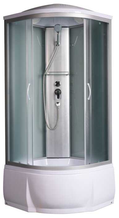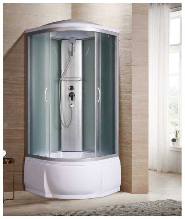 - + глубокий поддон, полукруглая форма, матовое полотно двери, двери раздвижные, встроенное сиденье, регулировка высоты ножек