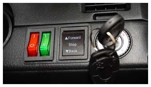 | Комплектация : | амортизаторы, багажник, боковые зеркала заднего вида, зарядное устройство, кабель AUX, клаксон, ключ зажигания, музыкальные колонки, пульт ДУ, ремни безопасности, ручка/педаль газа |