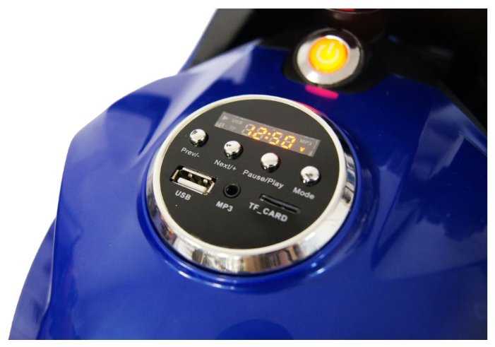 Дополнительная информация : | приставные колесики каучуковые (низкий профиль), диодная подсветка фар и колес световые эффекты можно отключать, заводские мелодии, пластиковый корпус сиденье - искусственная кожа, для детей от 2 до 5 лет |
