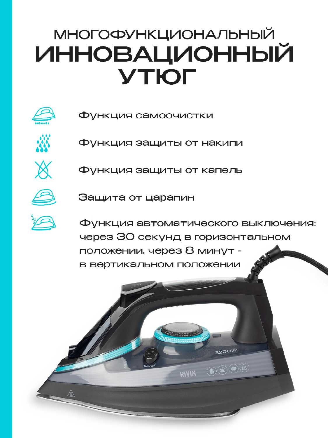 - Часто упоминается как преимущество над предыдущими утюгами.