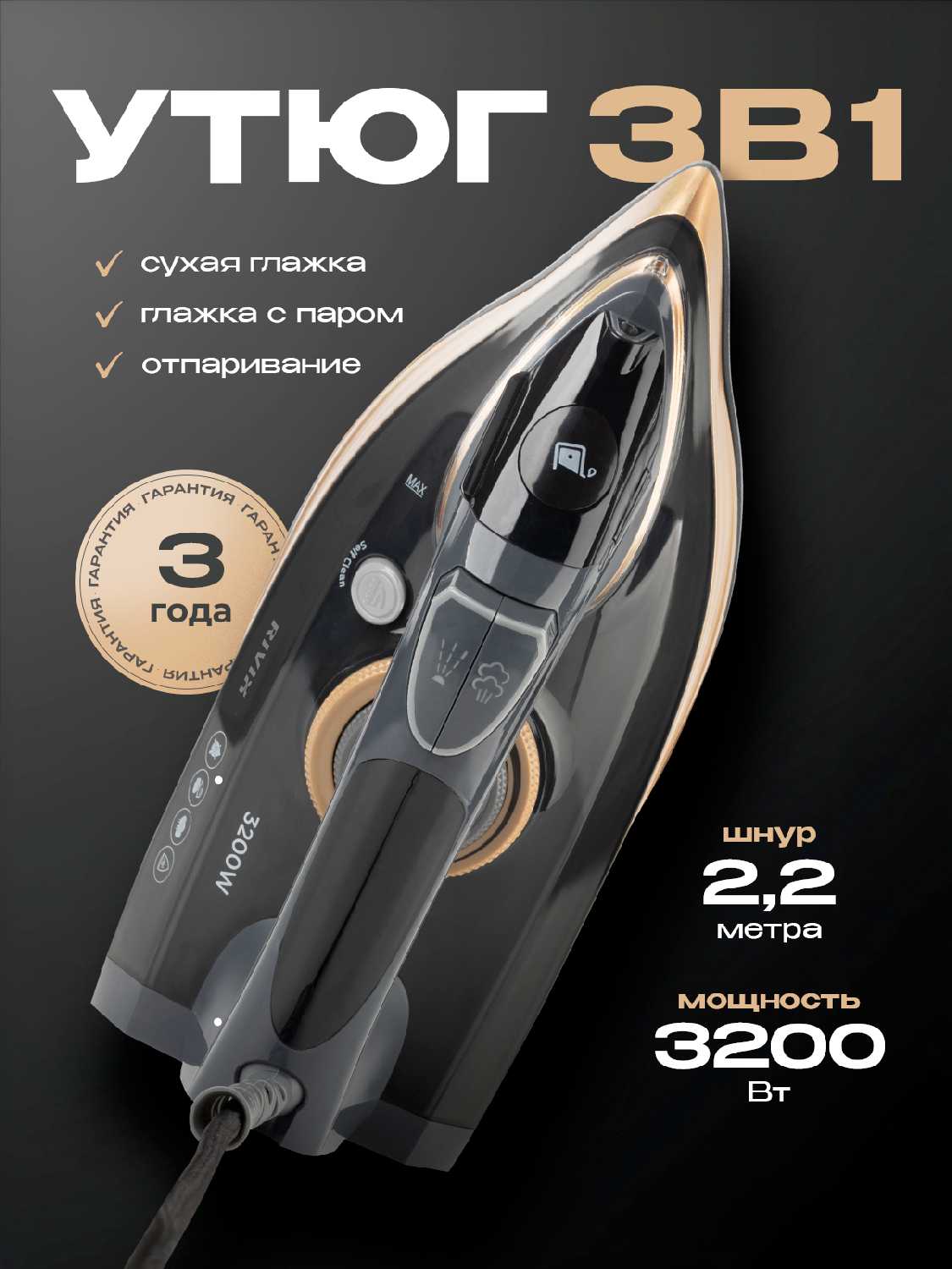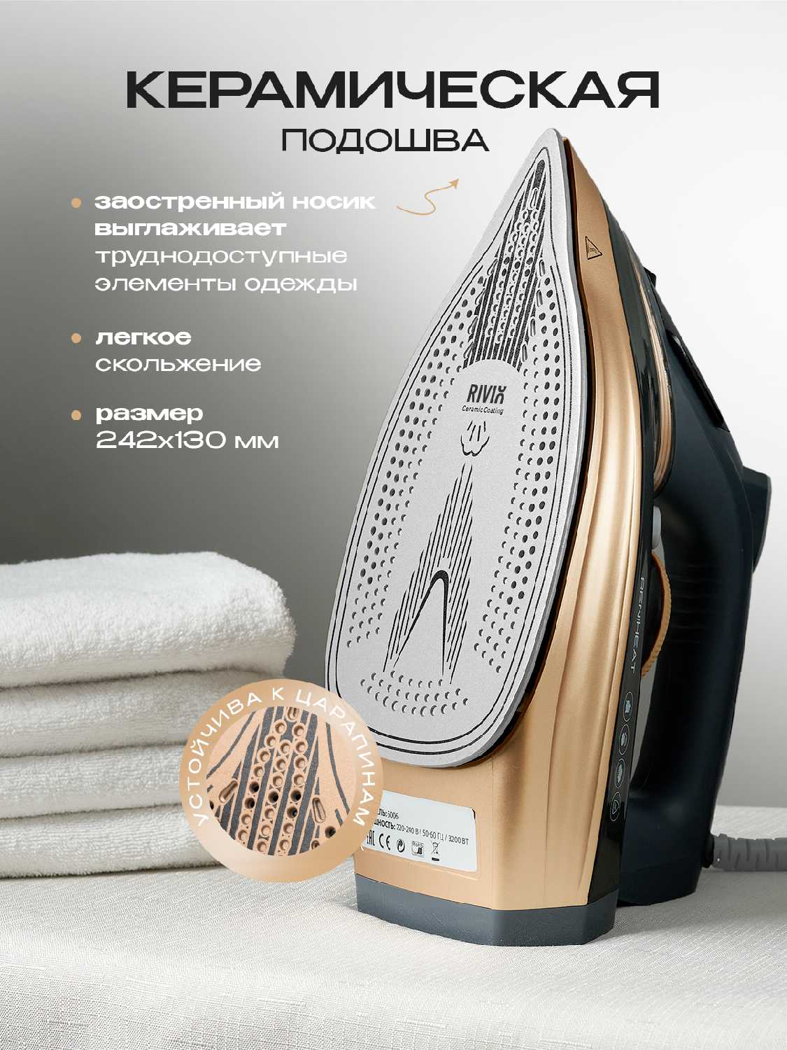 - Классное покрытие облегчает глажку, делая процесс быстрым и неутомительным.