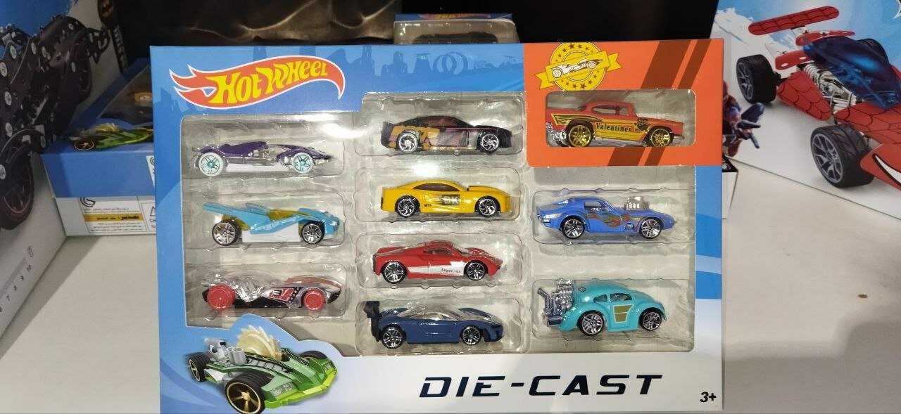 На фото логотип "Hot Wheel", в наборе - реплики оригинальных машинок.
