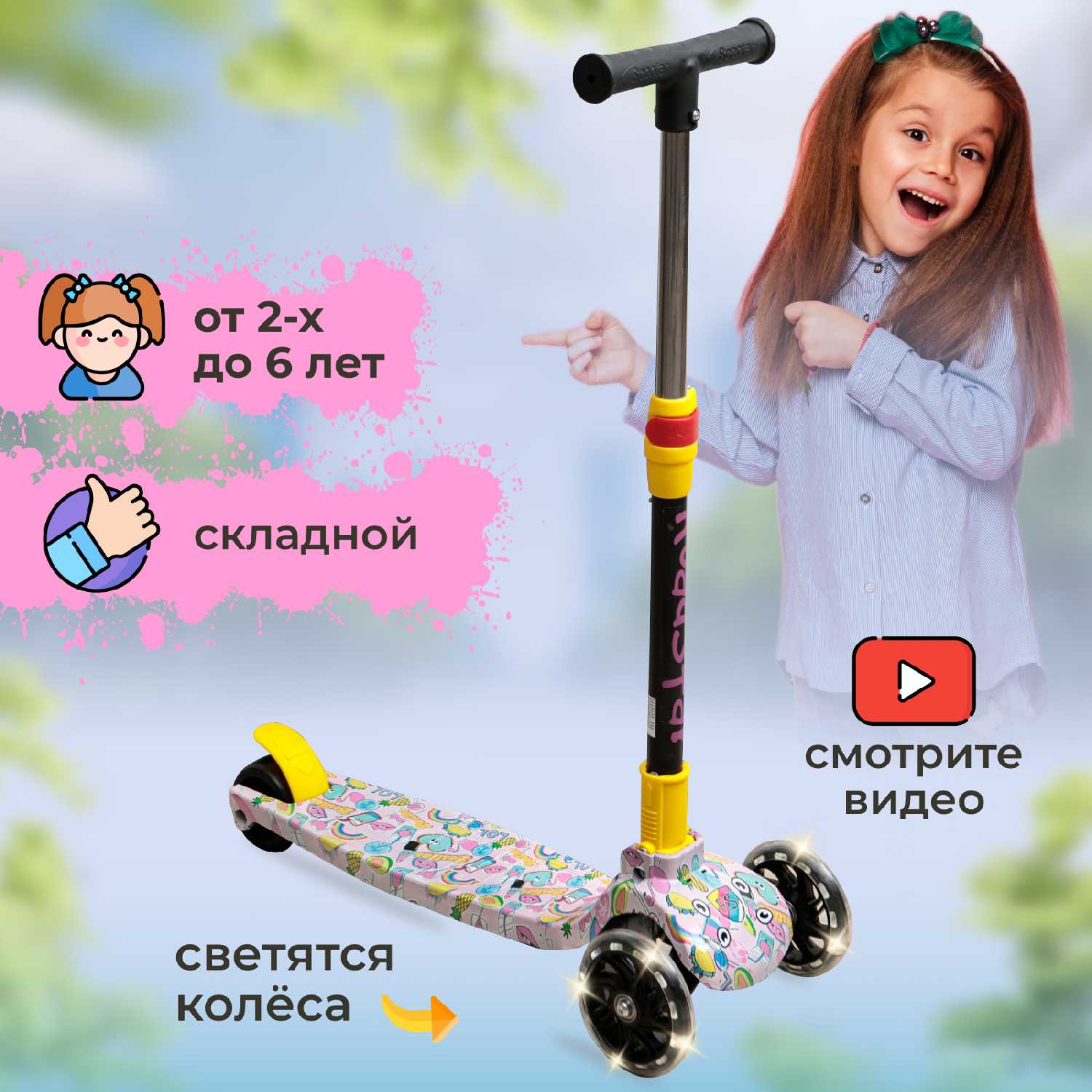 Отличный самокат,крепкий,яркий,колеса светятся ⭐ Ребенок доволен 👍