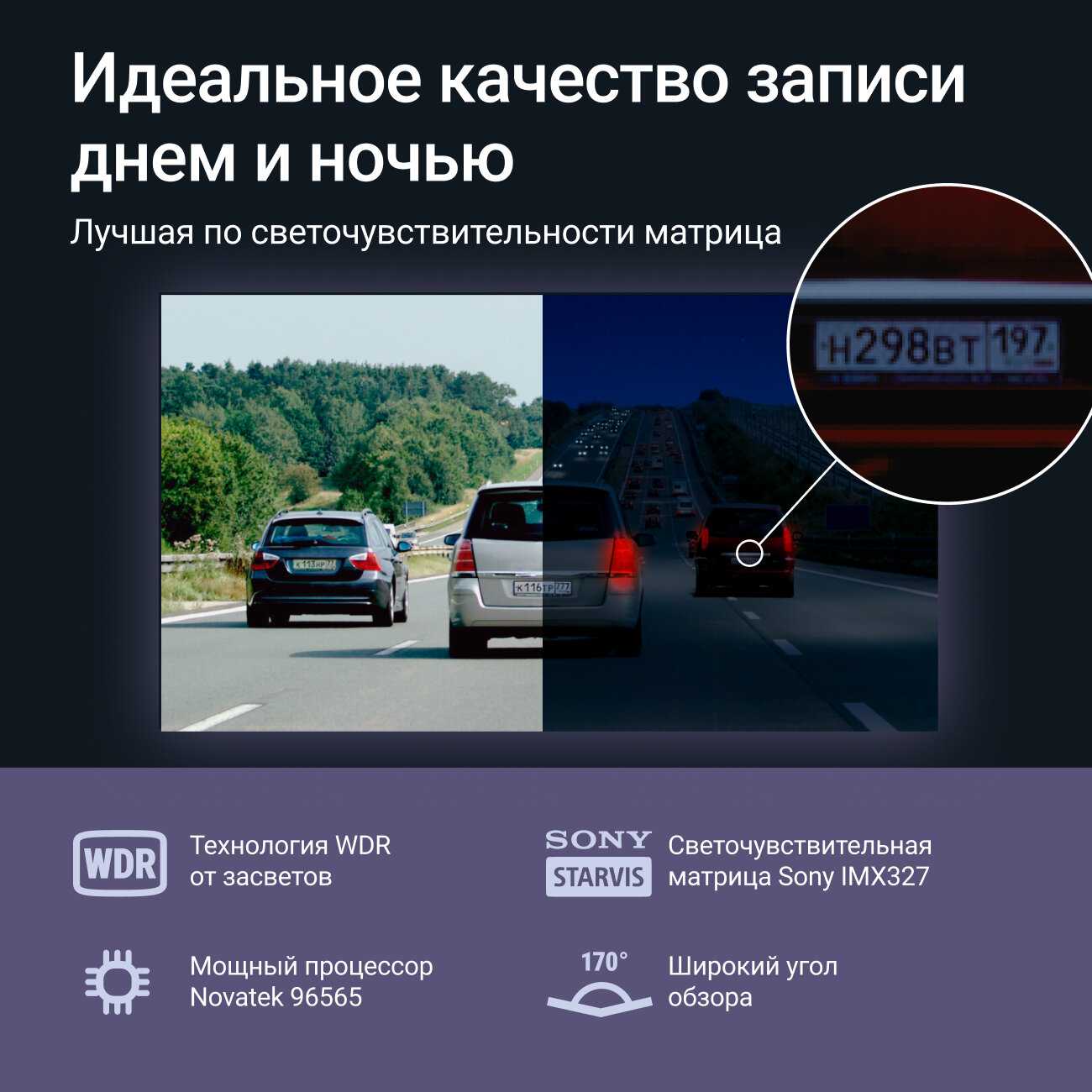 - Высокое качество видеосъёмки днём и ночью: