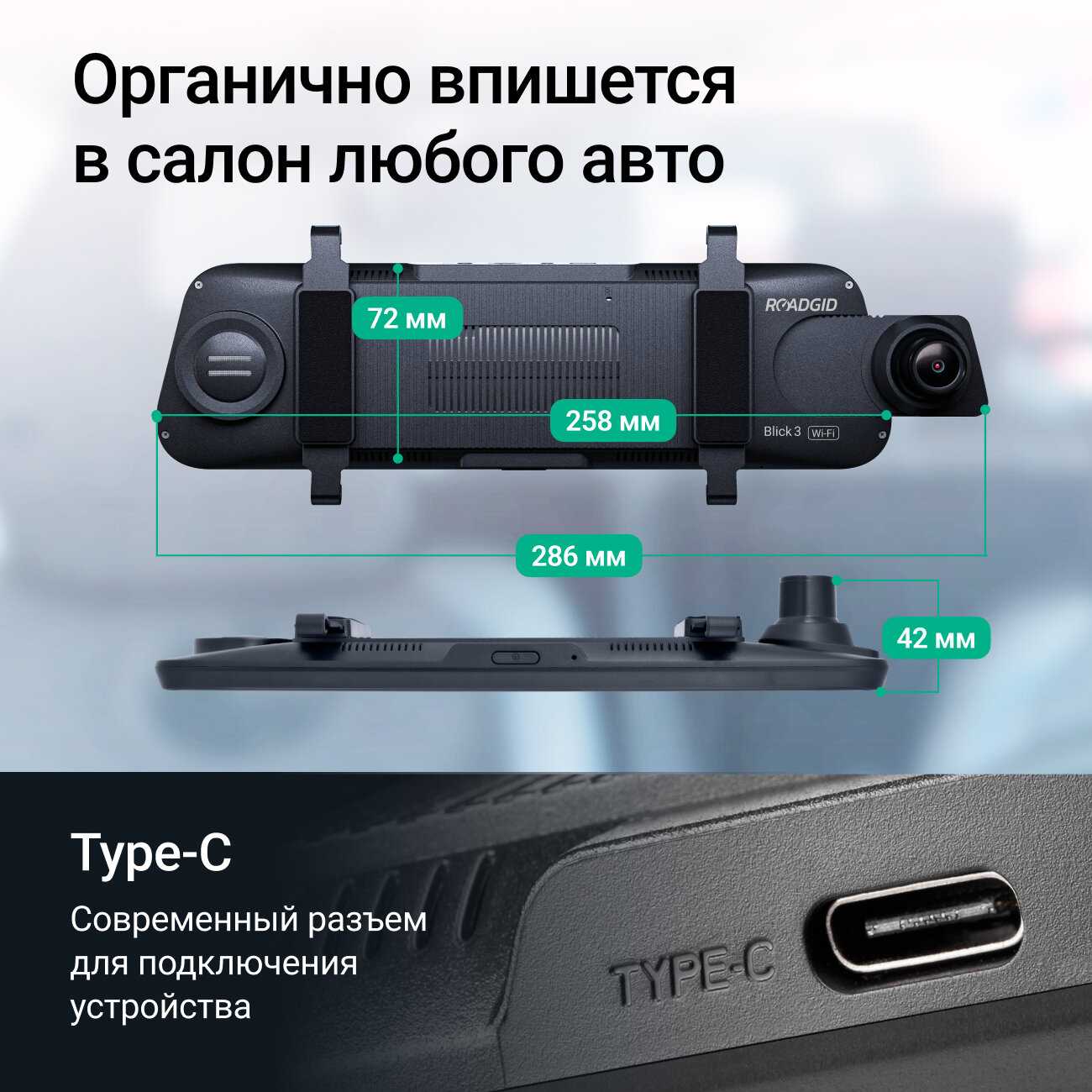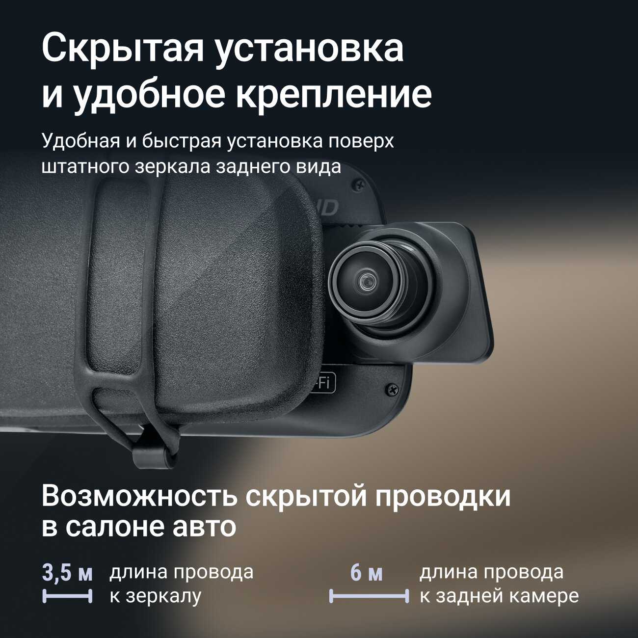 - Удобная интеграция в виде зеркала заднего вида: